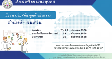 ประกาศโรงเรียนธัญรัตน์ เรื่องการรับสมัครลูกจ้างชั่วคราว ตำแหน่ง คนสวน