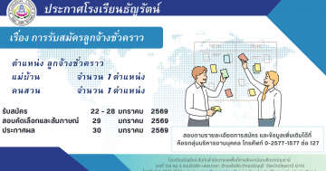 ประกาศโรงเรียนธัญรัตน์ เรื่อง การรับสมัครลูกจ้างชั่วคราว