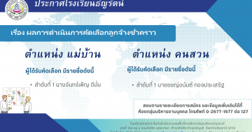 ประกาศโรงเรียนธัญรัตน์ เรื่องผลการดำเนินการคัดเลือกลูกจ้างชั่วคราว
